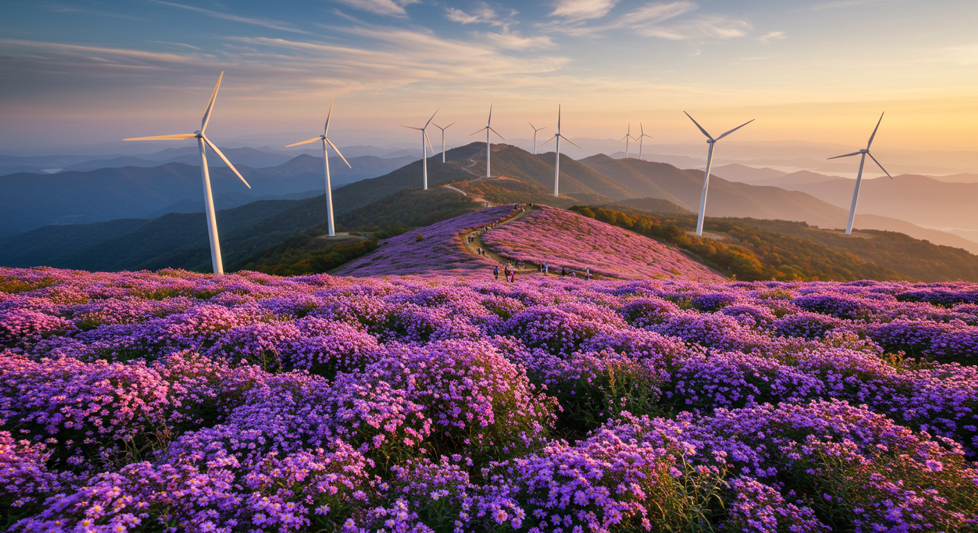 거대한 풍력발전기가 하얀 날개를 돌리는 이국적인 풍경 아래, 끝없이 펼쳐진 보라색 꽃밭을 거닐다 보면 현실의 시름은 잠시 잊게 될 거예요. 낮에는 눈부신 가을 햇살 아래 빛나는 꽃들의 향연을, 밤에는 쏟아질 듯한 별과 화려한 조명이 어우러진 '꽃&별 여행' 축제를 즐길 수 있어 하루 종일 있어도 지루할 틈이 없답니다. 단순한 등산이 아닌, 오감만족 힐링 여행을 원하신다면 거창 감악산이 정답이에요!