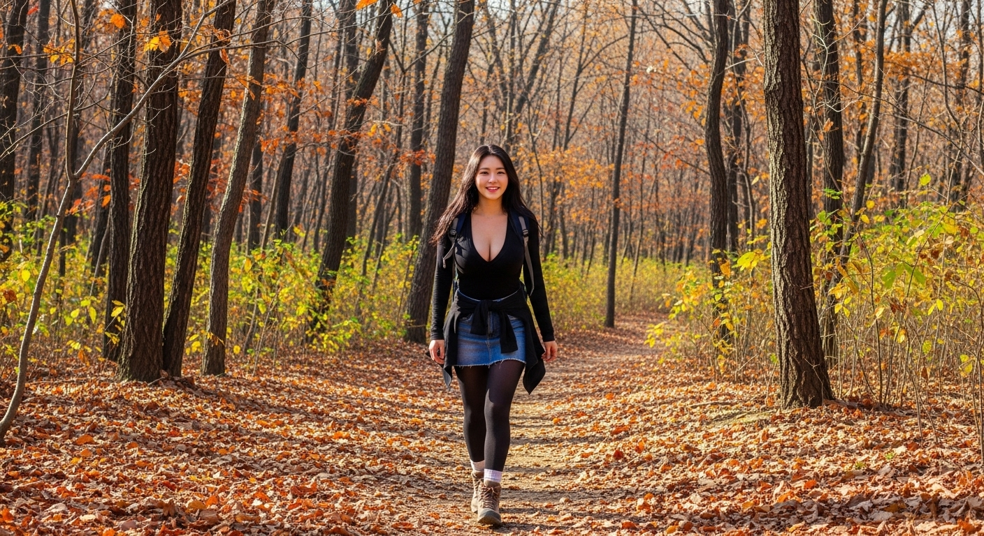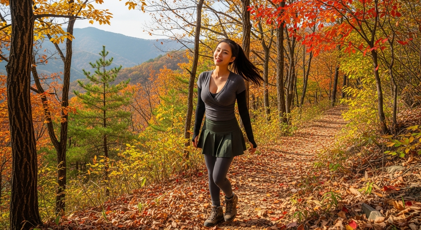 낙엽 때문에 길이 미끄러울 수 있어 등산화나 트레킹화를 신는 것이 안전합니다.