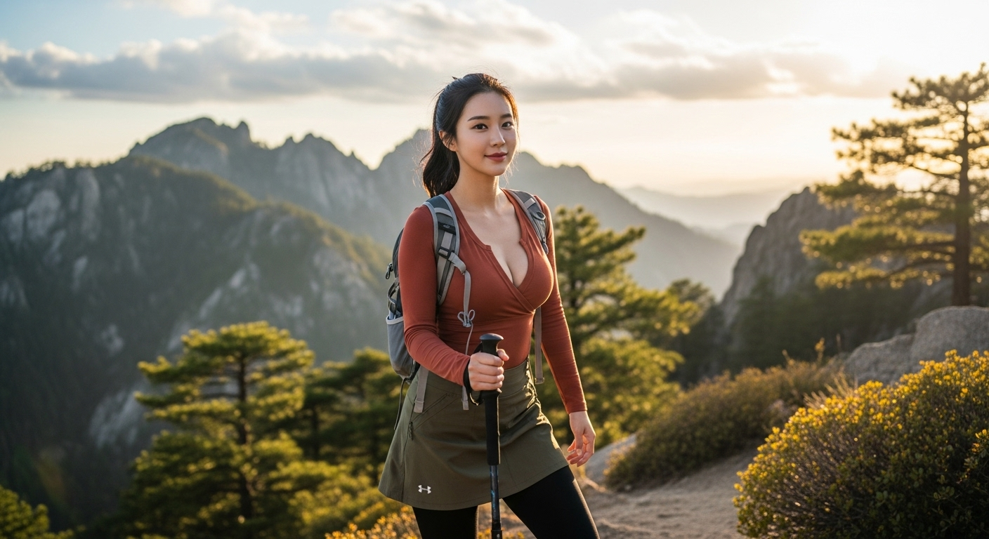 많은 분이 레깅스나 일반 운동복을 입고 가시는데, 땀 흡수와 배출이 잘 되는 기능성 소재를 입는 게 좋아요. 산 위는 생각보다 춥거나 바람이 많이 불 수 있거든요. 레이어드 룩으로 체온을 조절하는 것이 핵심이랍니다. 얇은 옷을 여러 겹 겹쳐 입어서 덥거나 추울 때마다 입고 벗는 게 가장 효율적이에요.