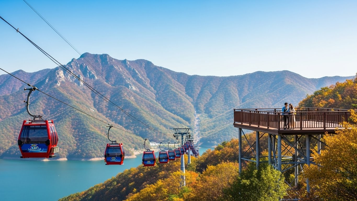 이곳에는 인생샷을 건질 수 있는 다양한 포토존이 마련되어 있어 데이트 코스로도 인기가 많아요. 케이블카 내부에서 창밖을 배경으로 찍는 사진은 물론이고, 상부 정차장에 내리면 귀여운 조형물들과 함께 사진을 찍을 수 있는 공간들이 곳곳에 숨어 있답니다. 특히 스카이워크 끝자락에서 호수를 배경으로 찍는 전신 샷은 다리가 길어 보이게 나오는 마법 같은 장소이니 꼭 도전해 보세요.